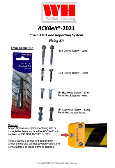 참고: 저작권 고지: 특허 출원 중이며 등록 상표인 ACKBelt®의 모든 충돌 방지 시스템, 구성품 및 디자인은 ©2019-2022의 저작권으로 보호되며 WS Weston의 자산입니다. 모든 권리 보유.